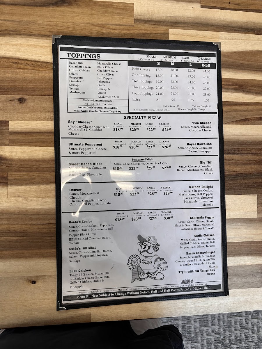 Guidos also excels in appetizers, offering delicious options such as Garlic Cheese Bread and spicy variants, starting at US$15.00. Pair your meal with house-made ranch for just US$1.00.